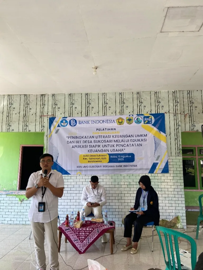 Berdasarkan observasi yang dilakukan Tim KKN UMD Sukosari sebagian besar pelaku usaha di Desa Sukosari tidak memiliki catatan keuangan dan sebagian memiliki catatan keuangan manual di buku tulis. Oleh karena itu Tim KKN UMD Sukosari melakukan kolaborasi dengan Bank Indonesia dalam peningkatan literasi keuangan melalui edukasi aplikasi SIAPIK.