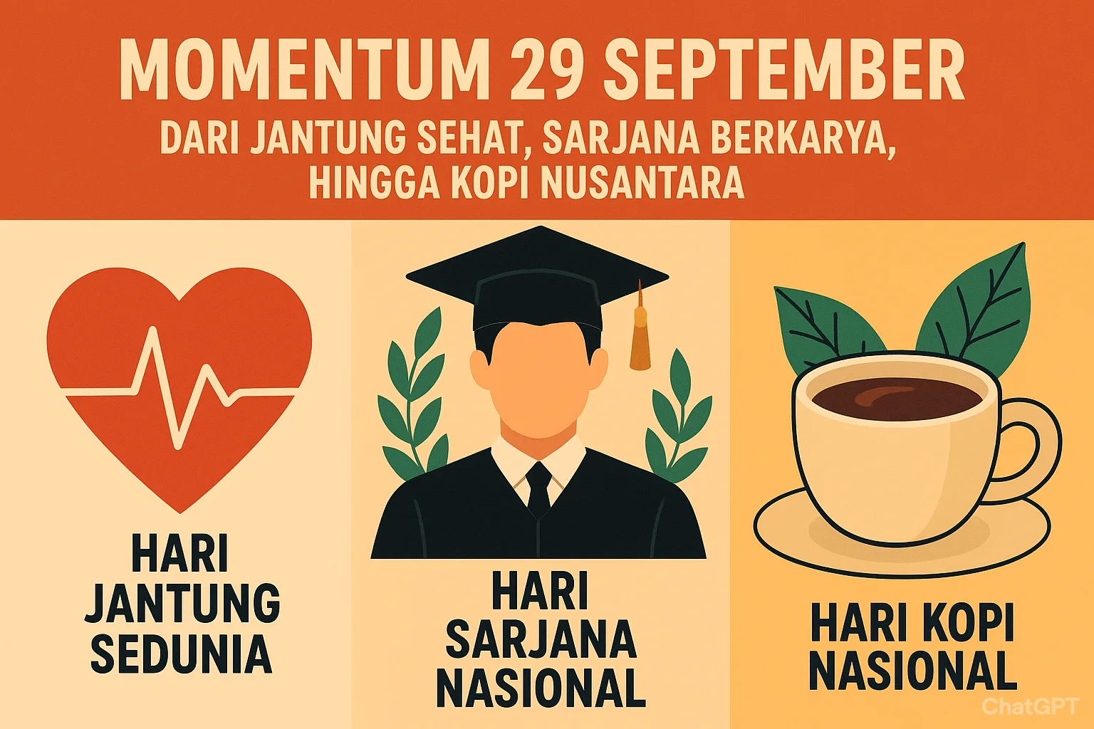 Tanggal 29 September mengajarkan kita bahwa memperingati sebuah hari bukan hanya soal seremonial, tetapi juga pengingat untuk bertindak nyata. Hari Jantung Sedunia mengajak kita menjaga kesehatan, Hari Sarjana Nasional mengingatkan pentingnya kontribusi intelektual, dan Hari Kopi Nasional merayakan identitas sekaligus kerja keras petani.