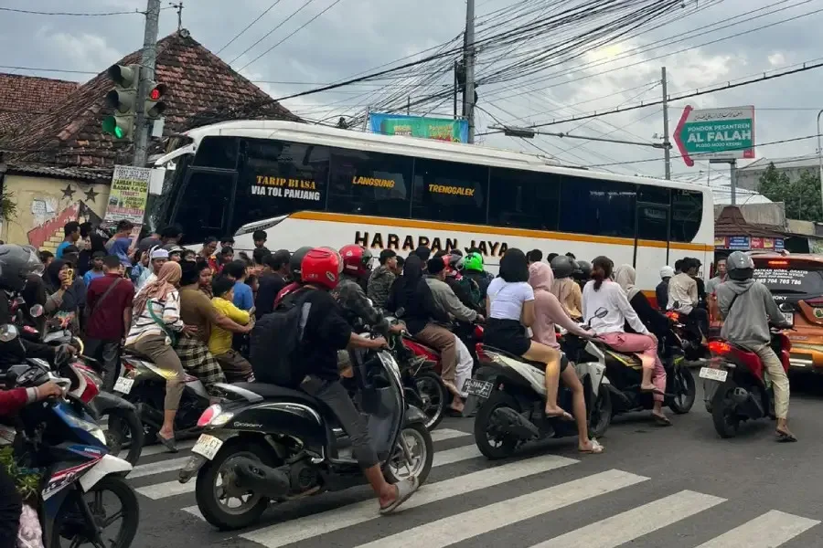Kediri, Harianmedia — Insiden lalu lintas yang melibatkan sebuah bus antarkota terjadi di Simpang Muning, Kota Kediri, Jawa Timur, pada Jumat sore, 23 Januari 2026. Bus milik perusahaan otobus Harapan Jaya terlibat kecelakaan dengan sejumlah kendaraan di kawasan perempatan yang dikenal sebagai salah satu titik padat arus lalu lintas di kota tersebut. Peristiwa ini sempat menarik perhatian warga sekitar dan pengguna jalan yang melintas.