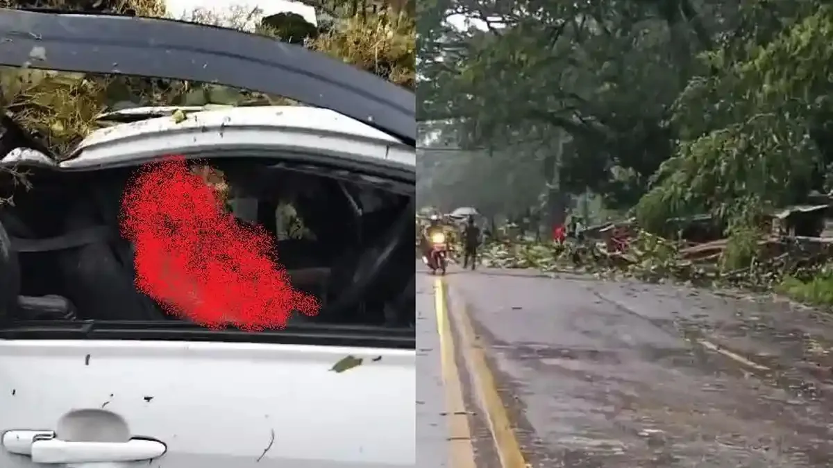 Mobil yang tertimpa pohon terlihat mengalami kerusakan pada bagian atas dan sisi kendaraan. Kaca dan bodi terdampak akibat tertimpa batang kayu yang cukup besar. Meski demikian, tidak ada laporan korban jiwa dalam kejadian tersebut.