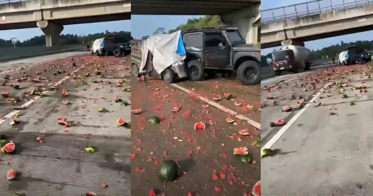 Kecelakaan tersebut juga berdampak pada kondisi jalan tol, di mana muatan semangka yang dibawa oleh pikap terlihat berserakan di badan jalan. Buah-buah tersebut tersebar di sekitar lokasi kejadian akibat benturan yang terjadi saat tabrakan. Kondisi ini sempat mengganggu arus lalu lintas di sekitar lokasi karena sebagian jalur tertutup oleh kendaraan yang terlibat kecelakaan serta muatan yang tercecer.