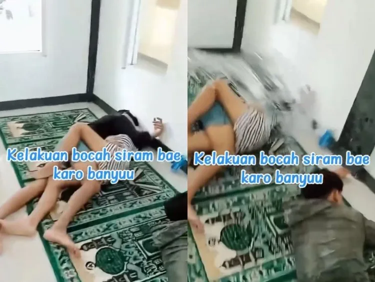 Sejumlah warga yang melihat kejadian tersebut kemudian memberikan teguran. Dalam video yang beredar, terlihat seseorang menyiram pasangan tersebut menggunakan air dari ember. Tindakan tersebut dilakukan sebagai bentuk respons terhadap perilaku yang dinilai tidak sesuai dengan norma yang berlaku di tempat ibadah.