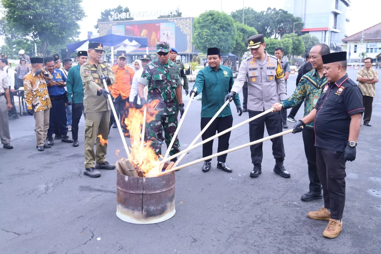 Jelang Ramadan, Ribuan Botol Miras dan Barang Bukti Dimusnahkan di Jember